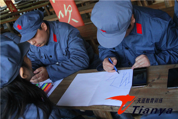 排列两个队形,进行团队同心同行,选出队长、团委和旗手,为各自的队伍起一个代号,列出队训,编唱队歌...